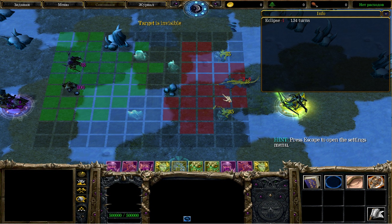 - Escape - открыть настройки: частоту приближения камеры, смещение текста влево/вправо, подсказки вкл/откл, там же можно запретить зеркалки (бои против своей же расы)