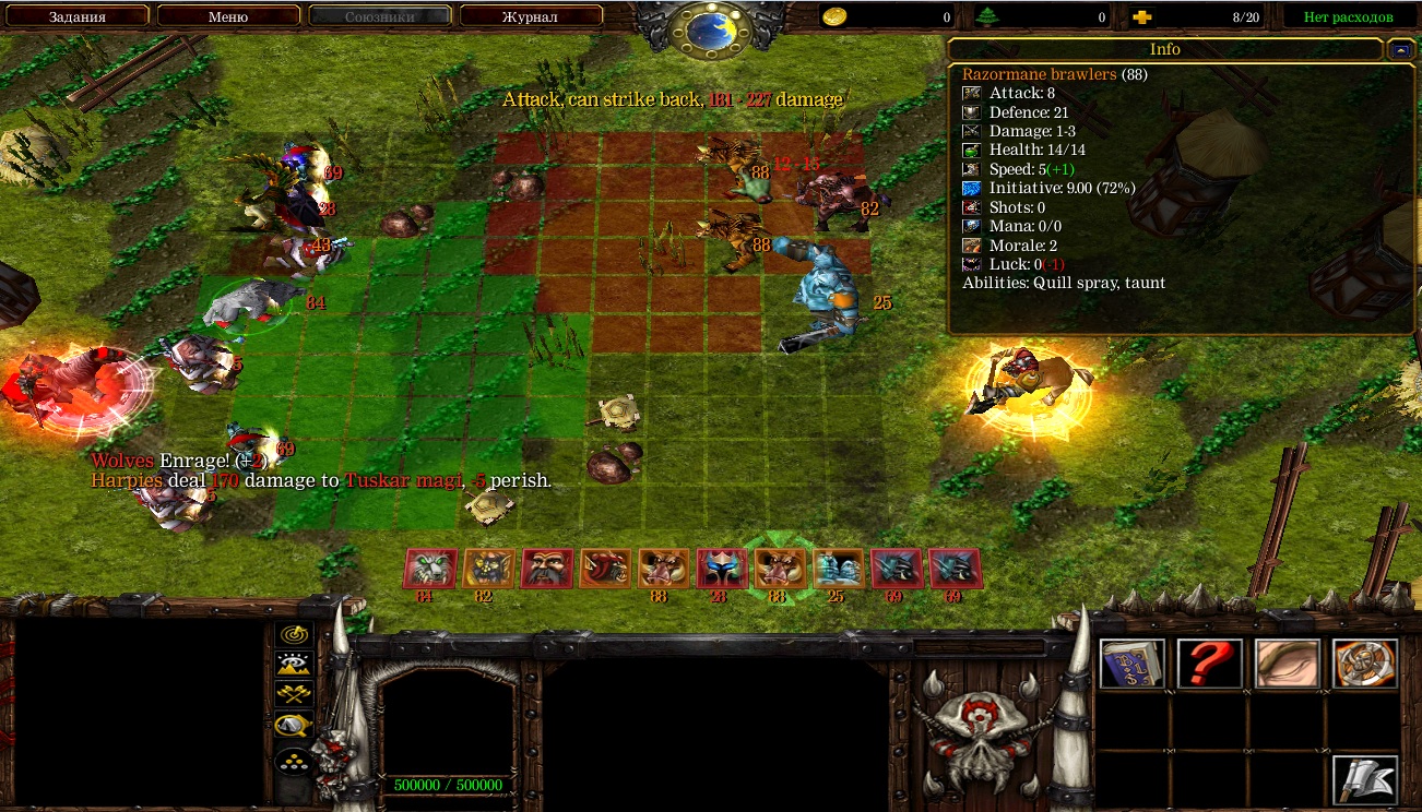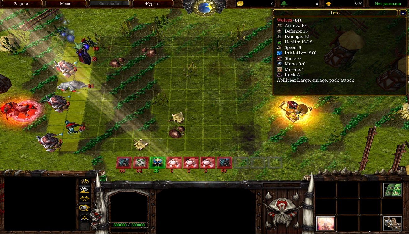- [W] - ожидать, следующий ход наступит вдвое быстрее