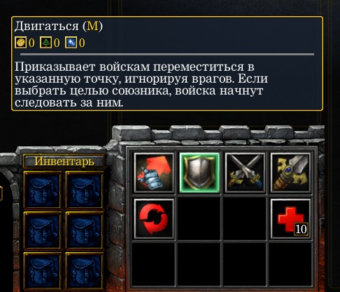 - кнопки юнитов - эти юнитов, можно было натренировать/купить в казармах/тавернах [еше не реализовано]
