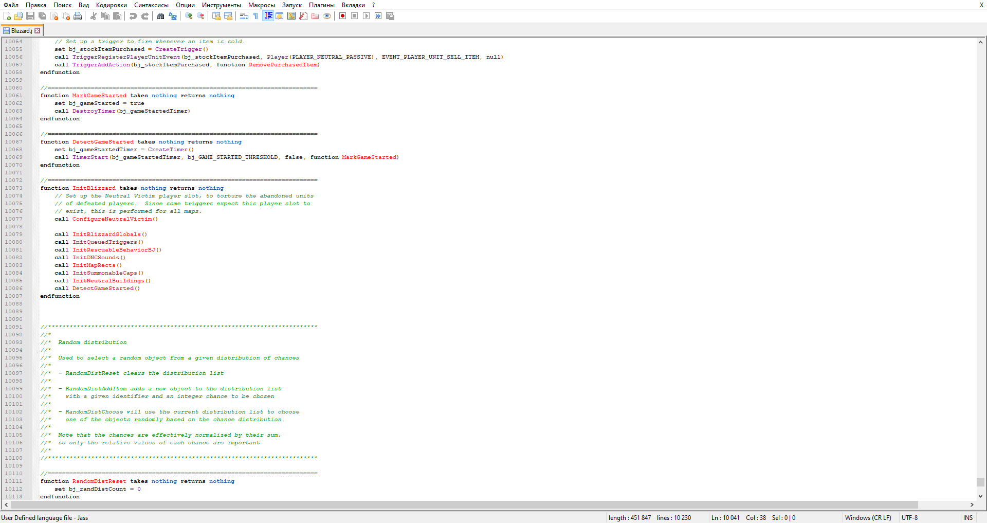Отлично, теперь мы обладаем кучей кода, который нам нужно будет пристроить к WC3, для этого открываем War3Patch.mpq и достаем из него Blizzard.j (Scripts/Blizzard.j). Там мы ищем функцию InitBlizzard, как показано на скриншоте.