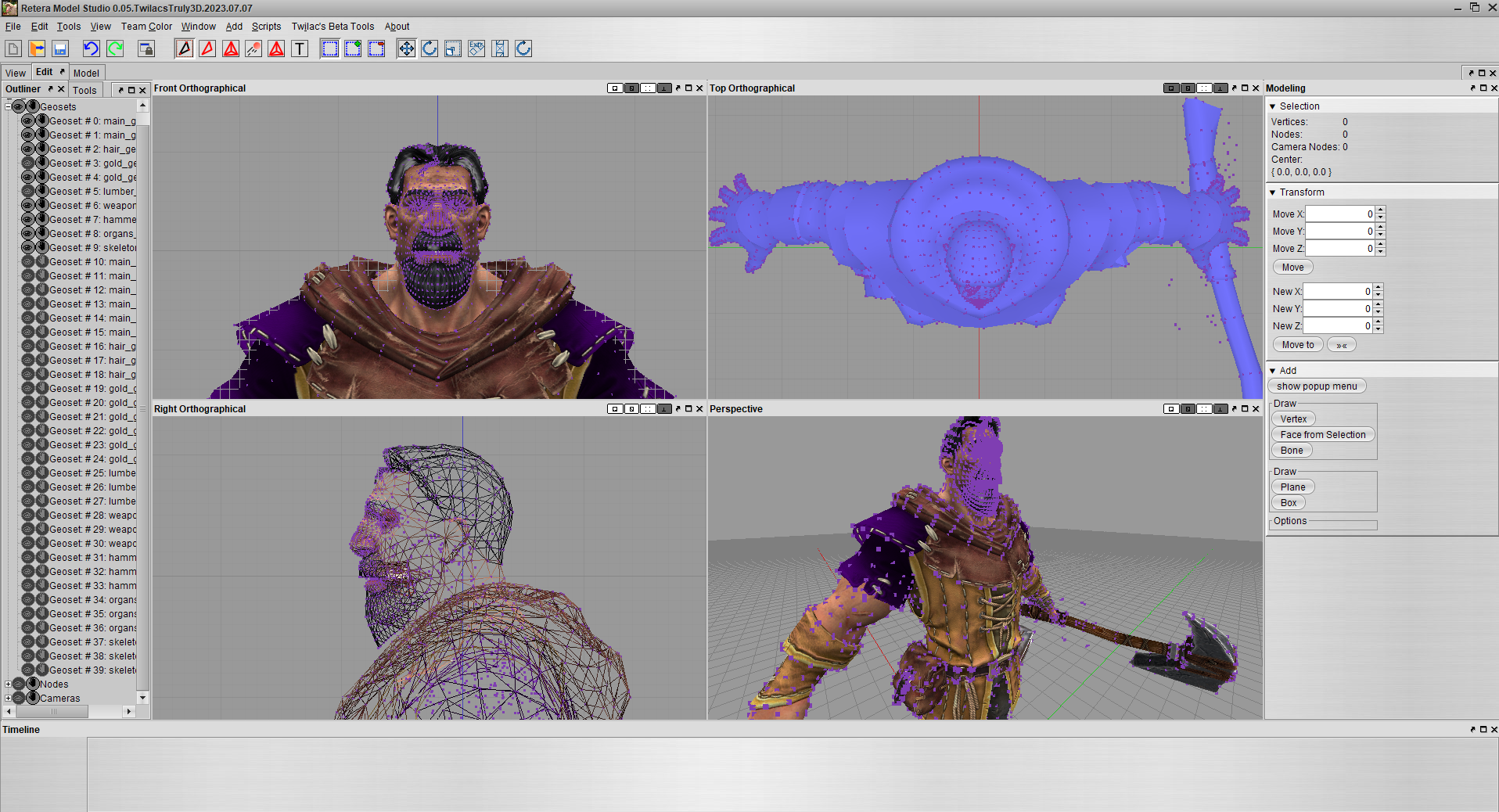 Редактор моделей для Warcraft 3, альтернативная ветка развития программы Retera's Model Studio. По некоторому функционалу превосходит оригинальный RMS, имеет более развитый и дружественный интерфейс, особенно по части настройки нодов.