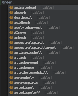 Позволяет использовать автодополнение в IDE при работе с приказами.