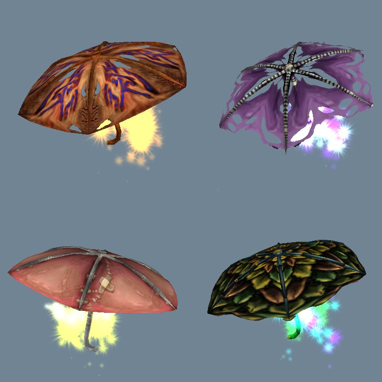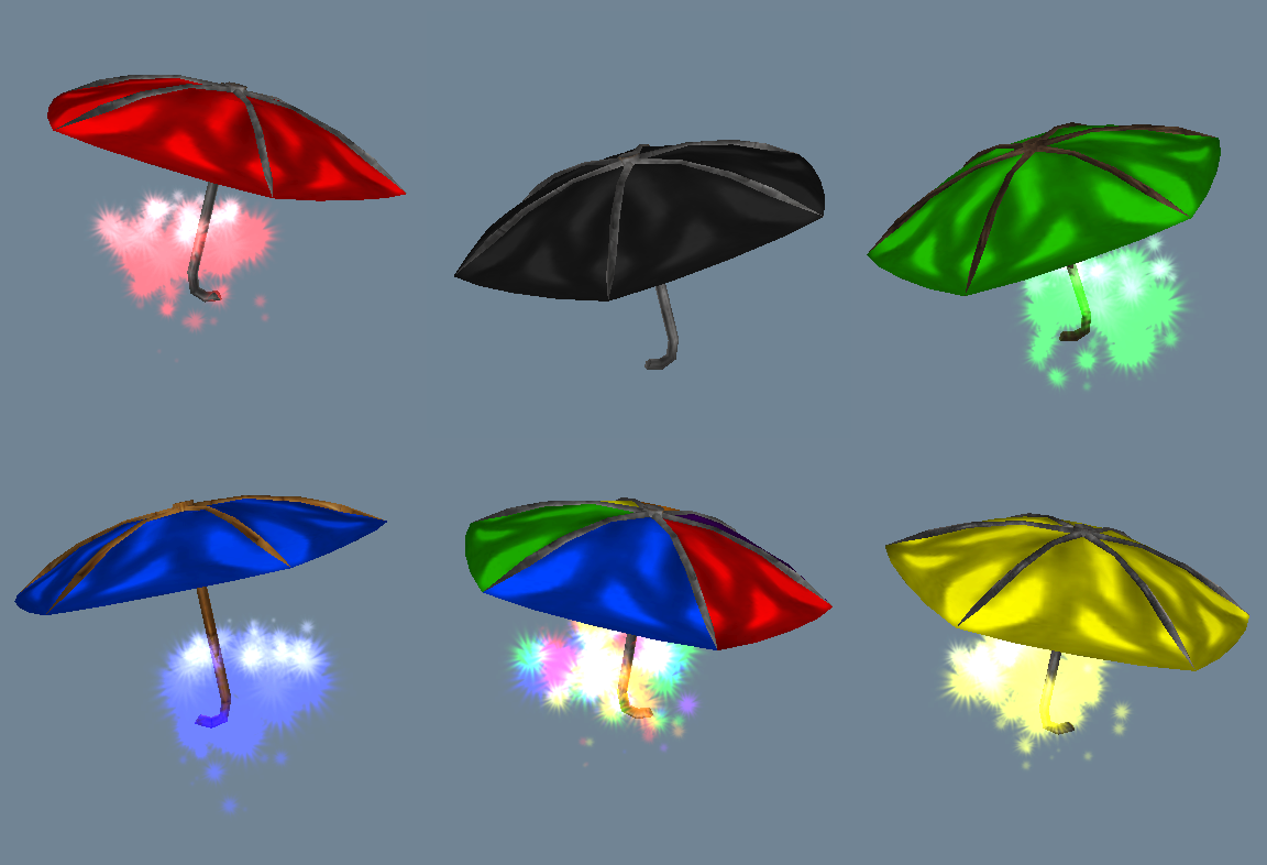 - В архиве одиннадцать зонтов каждый в двух вариациях: модель предмета и модель аттача