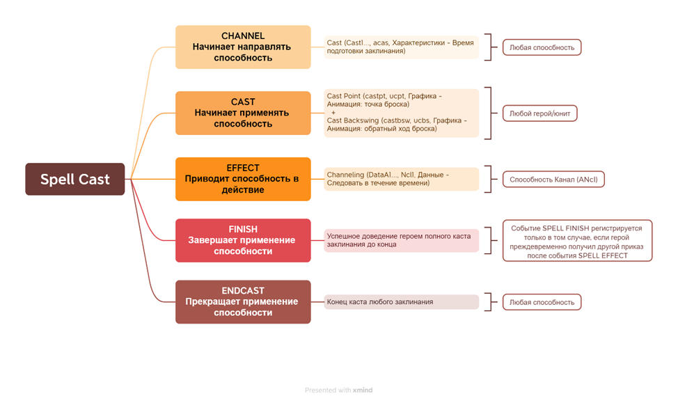 CHANNEL -> CAST -> EFFECT -> FINISH -> ENDCAST