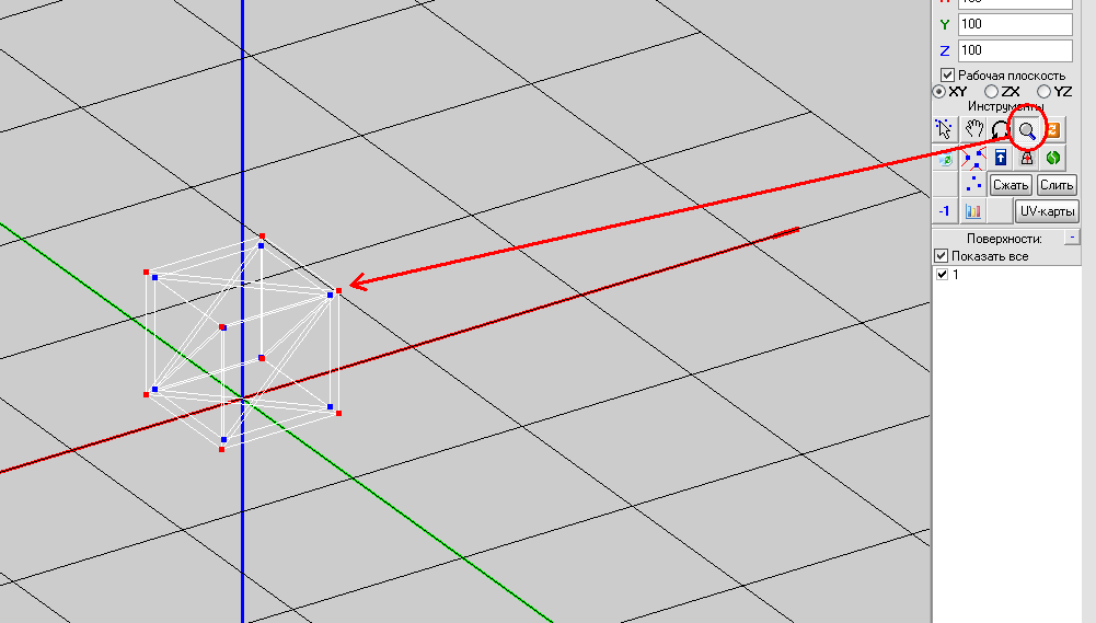 - Открываем в mdlvis'е, выделяем нужные вершины, копируем и вставляем в ту же точку, а затем увеличиваем масштаб только что вставленных на 10 например, можете поэкспериментировать со значением % и выносим их в новую поверхность. Сохраняем и выходим из виза, он нам больше не понадобится.