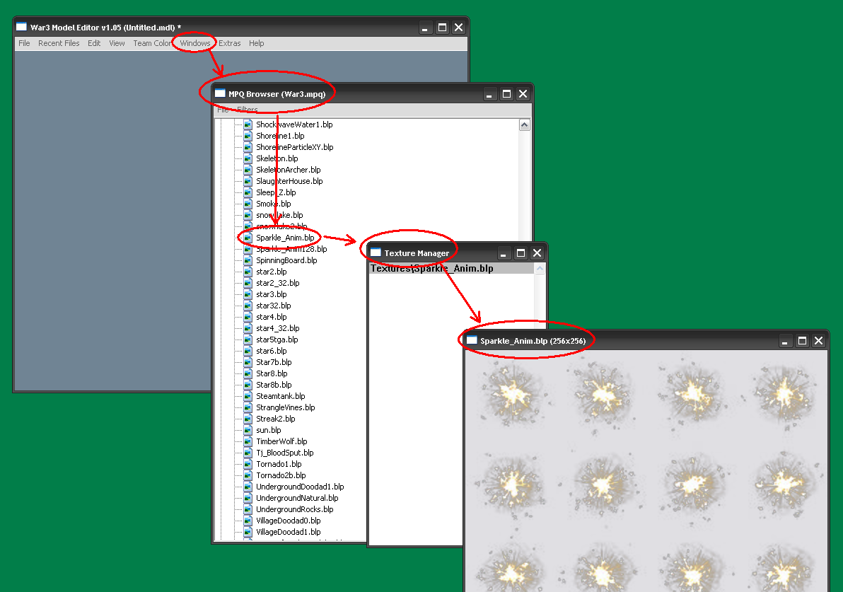 Примечание: присмотритесь также на досуге к текстуре “War3.mpq\Textures\Sparkle_Anim.blp”, из неё можно сделать массу интересных вещей, например высококачественные брызги крови или классный феерверк, на что только вашей фантазии хватит.