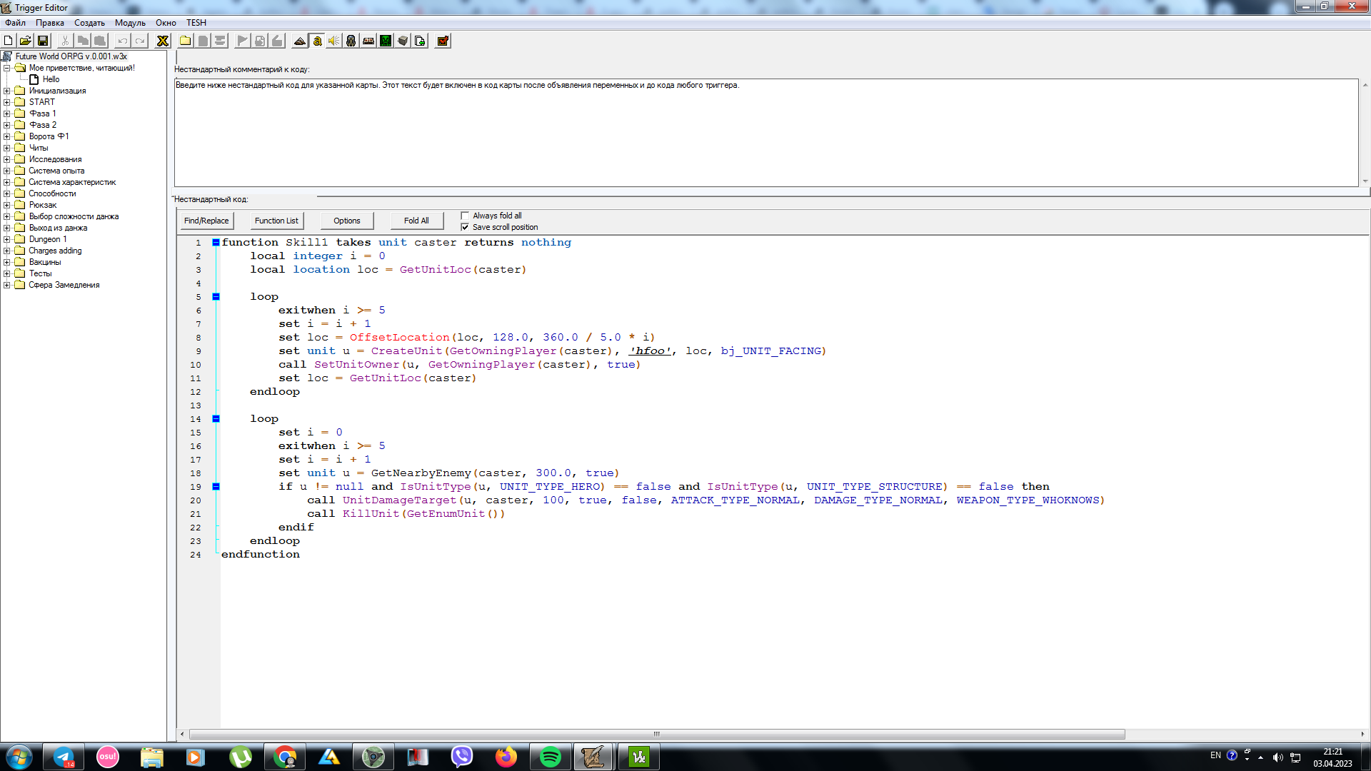 По задумке, код должен создать вокруг Caster, 5 юнитов, которые будут вокруг него кружится. И будут принадлежать владельцу юнита Caster. Если подойдет вражеский юнит к ним, то они взорвутся и нанесут 100 ед. урона.