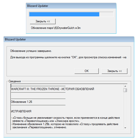 - Офлайн патчи в виде файлов доступны для версий 1.00-1.27b, начиная с версии 1.28.0 патч происходит только "на лету" через Battle.Net. Таким образом, патчей в виде exe файлов для 1.28 и выше не существует.