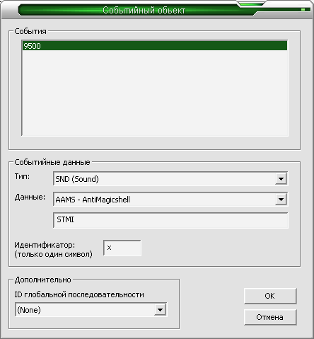 Итак, открываем модель Abilities\Spells\Other\Transmute\PileofGold.mdl (находится в War3Patch.mpq). Она имеет 2 эвента, оба из них – звуки. Какой выбрать? Методом научного тыка я понял, что нужен второй. Щелкните по нему 2 раза. Видите, в поле «Данные» стоит идентификатор AAMS, а в поле ниже – STMI? Почему? Просто в списке этого звука нет (всё от нас Близзы спрятать хотят!), и пришлось писать его идентификатор вручную.