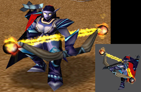- Для начала нужно прилепить по источнику огня к двум шарам на концах лука (ну они прям напрашиваются). Так, текстура… Откройте ещё один раз W3ME, там браузер MPQ, вытащите из War3x.mpq текстуру «Textures\Clouds8x8.blp» и киньте ее в папку с сохраненной лучницей.