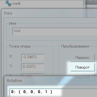 Дело в том, что при нажатии на кнопку "Поворот"(будь то в опциях кости или источника частиц), появляется список ключевых кадров данного объекта. Но если вы нажмете "ОК", то последние 2 аргумента у каждого ключа меняются местами! Притом перемещается только правая - налево, а на ее место ставится "0".