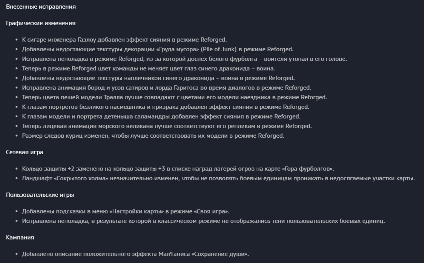 - Исправлены неполадки, в результате которых задание «Сумерки богов» в версии Reforged было слишком легким.