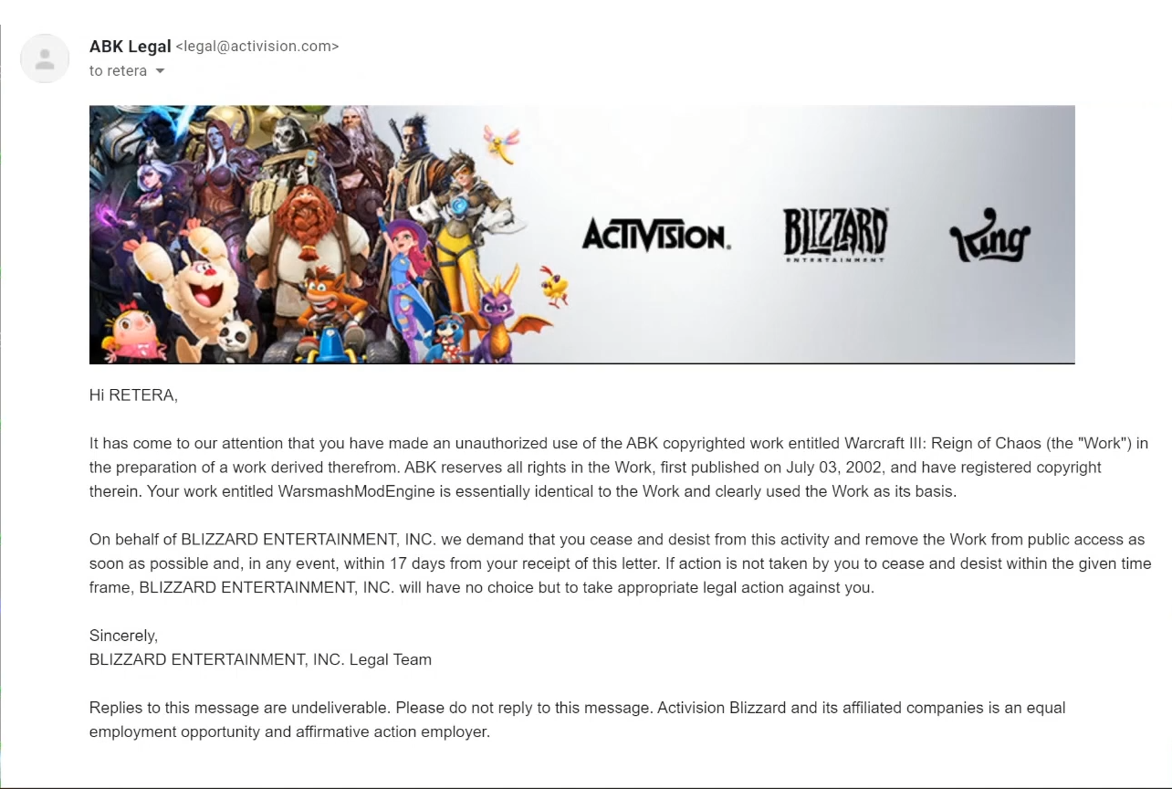 Blizzard не уничтожала Warsmash. Я сделал это. Blizzard не отправила мне электронное письмо о прекращении и отказе от участия в разработке Warsmash. Это был юмористический фон для моего видео, сделанного генератором подобных писем, найденного мной в топе поиска Google.