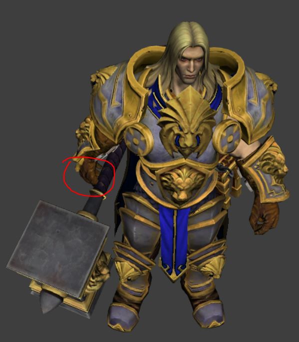 Я всех категорически приветствую . Захотелось мне сделать модель Тириона Фордринга на основе Утера . Всё шло нормально , но когда я посмотрел анимацию всех атак , модель хватается за так сказать ручку прошлого молотка . Пытался исправить .