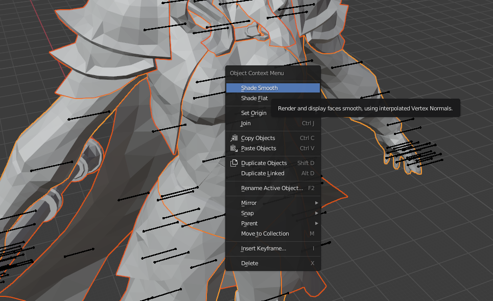 Чтобы сиськи джайны не были квадратными, включаем smoth shading на все геосеты