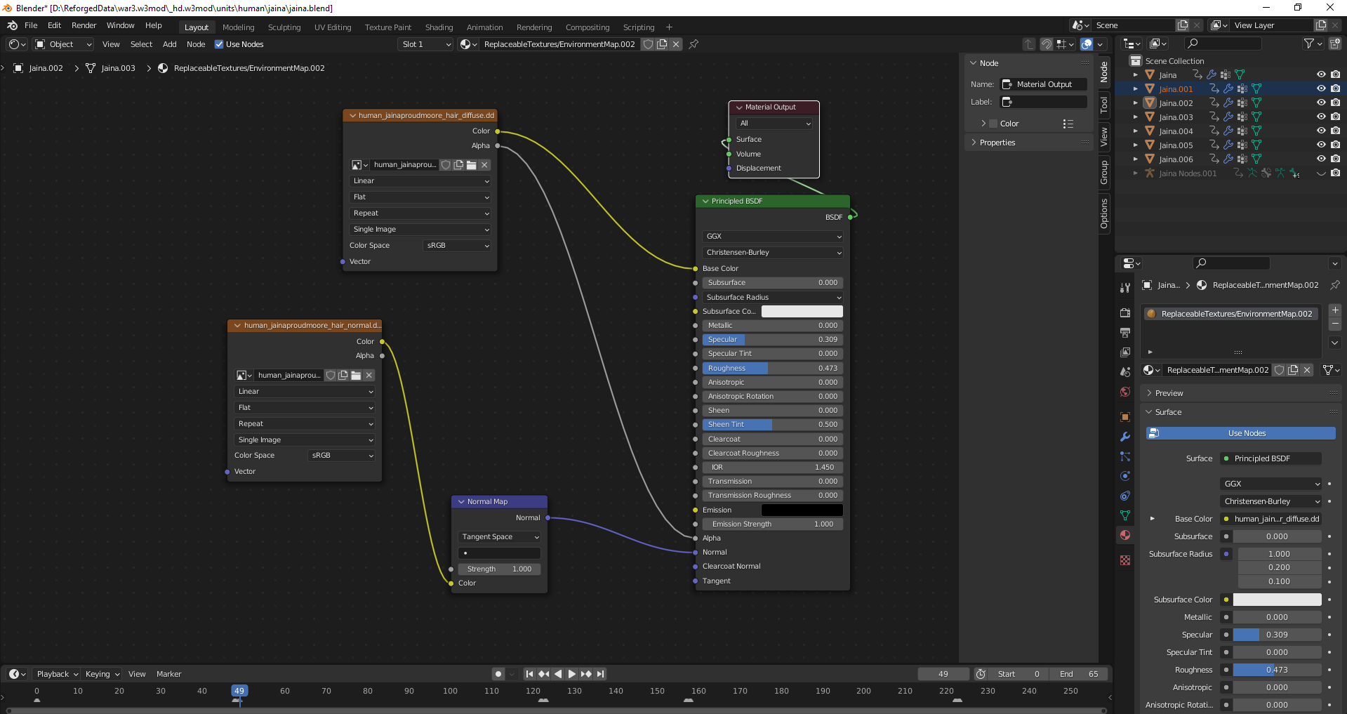 Чтобы сиськи джайны не были квадратными, включаем smoth shading на все геосеты