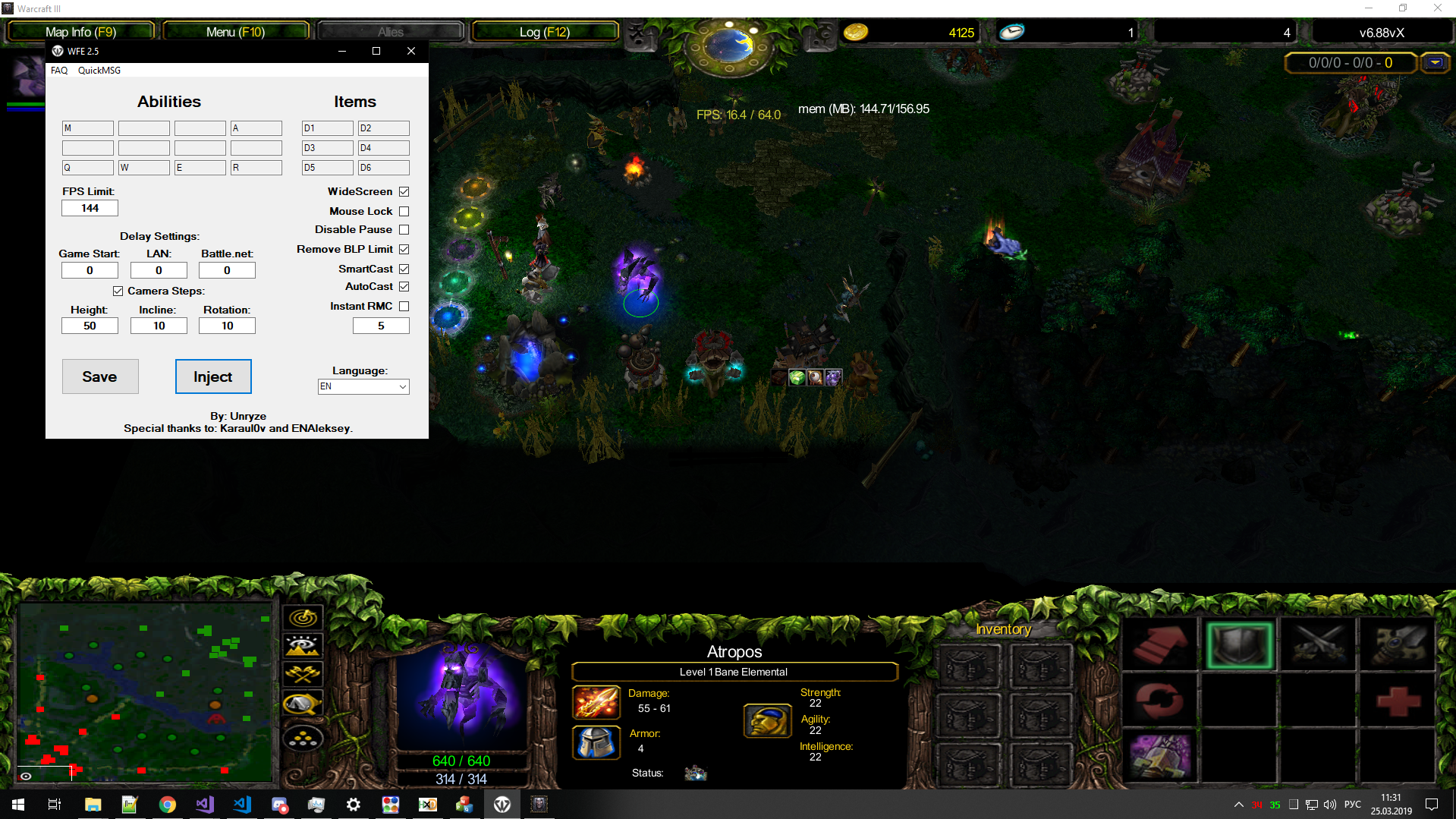 Dam3w: Всё работает... Подгружать программу нужно через WFE.exe нажатием кнопки Inject, когда War 3 включен.