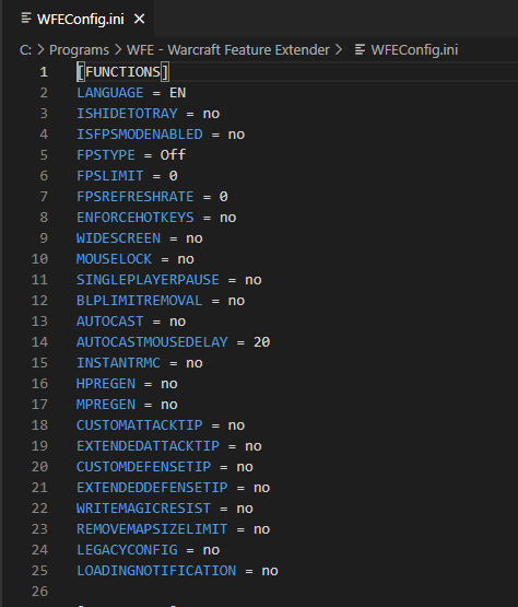 Если WFEConfig.ini отсутствует, WFE будет использовать стандартный конфиг.