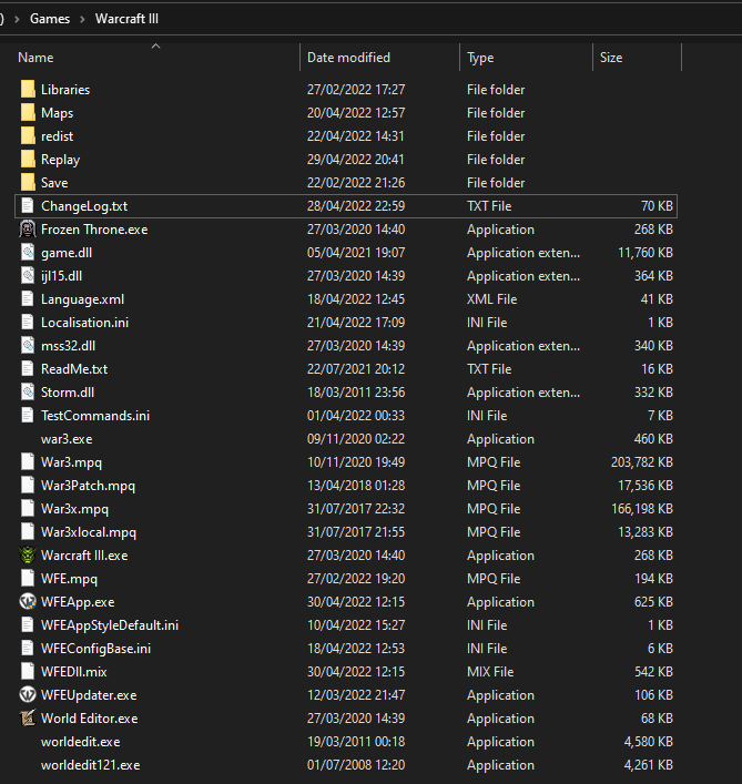 Пример: Когда WFE в главной папке Warcraft 3, тестовые команды не будут работать, ибо по какой-то причине Localisation и TestCommands текстовые файлы чем-то используются, возможно сама игра пытается читать все .ini файлы, тем самым создавая эту проблему.