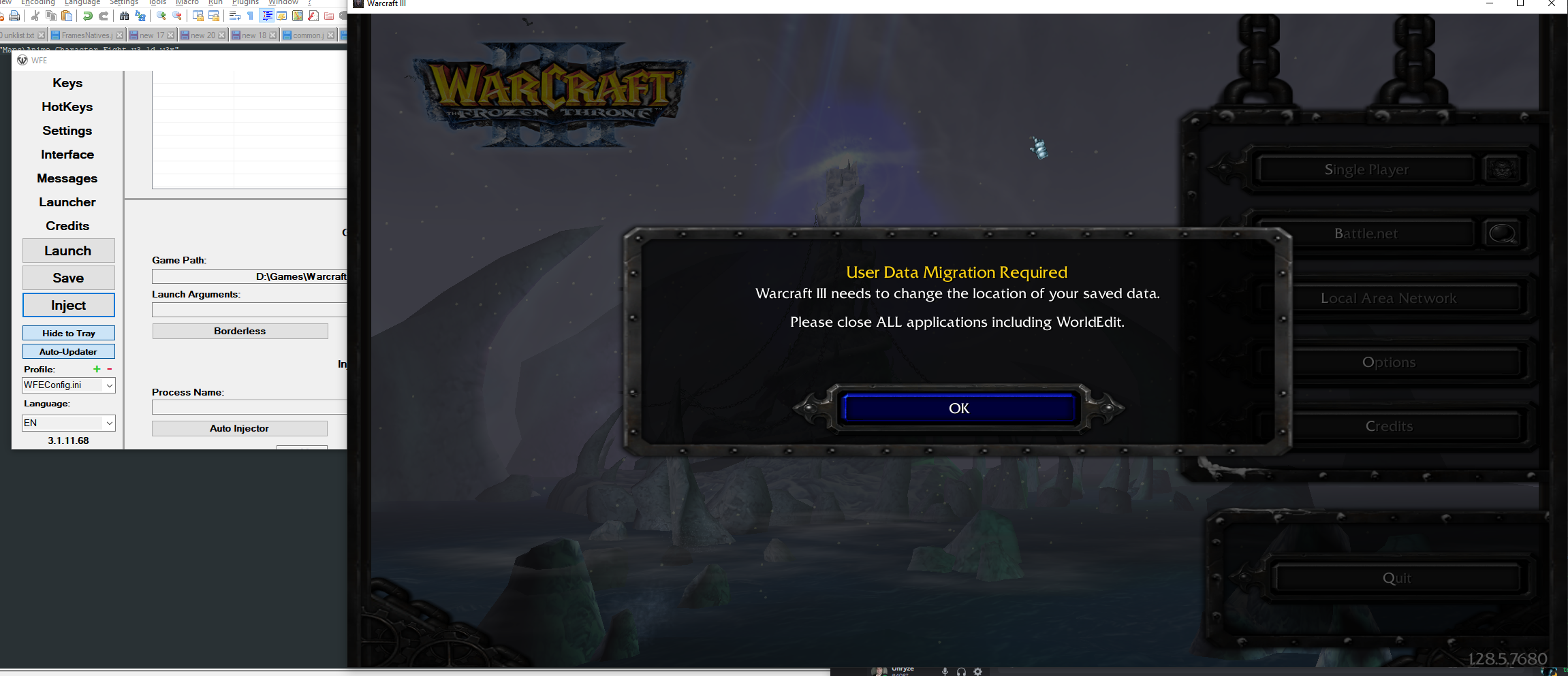 Пример: Когда WFE в главной папке Warcraft 3, тестовые команды не будут работать, ибо по какой-то причине Localisation и TestCommands текстовые файлы чем-то используются, возможно сама игра пытается читать все .ini файлы, тем самым создавая эту проблему.
