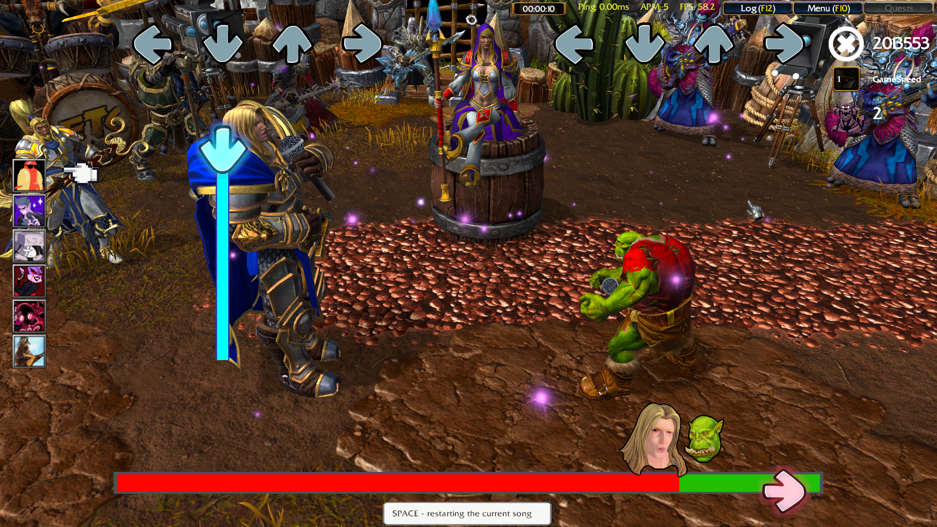 На данный момент доступно 3 полноценные песни, хотя так то песен 5, но они такие быстрые, что в них невозможно играть среднестатистическому варкарфтеру, + я напортачил с 4 песней, немного запутался в нотах.