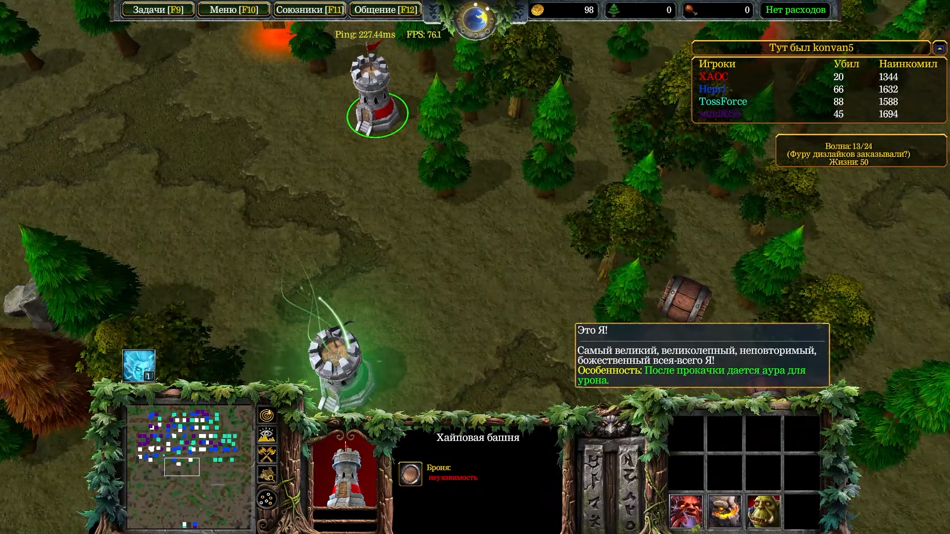 Задача - продержаться 24 волн. Каждую 4-тую волну идет босс.