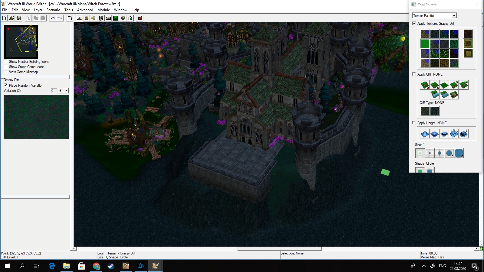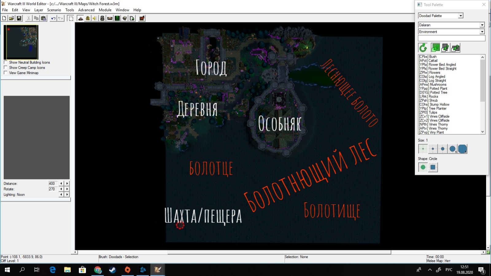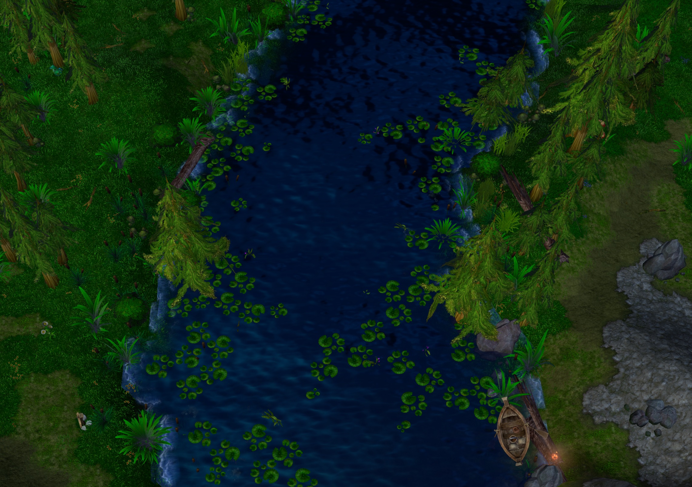 Карта делалась мною для конкурса. Когда конкурс объявили, я долго думал над тем, какое место вселенной Warcraft я хотел бы изобразить. Остановиться я решил на болоте. Вернее, на болотном лесу, ибо опыт у меня уже был (выкладывал ресурс карты "Призрачный лес"), а также это мой любимый тип ландшафта в играх. К счастью, в вселенной Warcraft как раз есть такое место - Ведьмин лес, что находится около королевства Гилнеас, которое печально известно катастрофой с проклятьем воргенов.