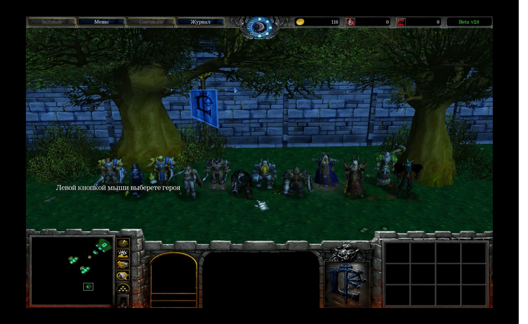 1. Выбор героя. (У каждой фракции по 12 героев на выбор)