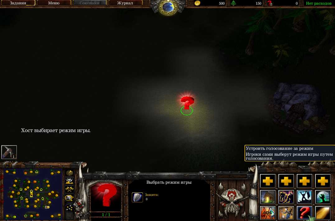 - Удобный выбор режимов, рас и героев. Можно выбрать рандомную расу, можно назначить голосование на выбор режима игры.
