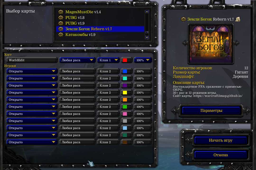 Земли богов - переосмысление нестандартного развития, в котором вы можете развивать базу или героя. Карта отличается упором на баланс, кол-во игровых рас и оптимизацию. Не путать с картой Земли Бога.