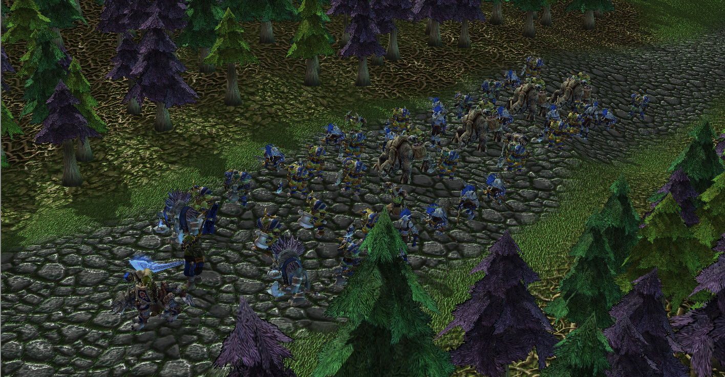 лес убогий из за того что это стандартный "близзардовский" лес (т.е. берем крупную кисть, выбираем декорацию деревья и мажем по карте), авторы мода тут в общем то не виноваты т.к. меняют сами модельки с возможностью поиграть в стандартные мили/кампании в которых в изобилии присутствуют эти самые "близзардовские" леса. кроме миссии за орков в roc-e , где 15к дерева собрать надо:)