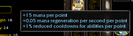 ИМХО, слишком круто ускоряет перезарядку единица Инты. Кстати, если по дефолту КД 30 сек., то у кастера с 25 Инты на первом уровне КД будет не тридцатка, а 22,5, и игрок будет принимать за "КД по умолчанию" это значение. Или стартовая Инта не влияет на КД?