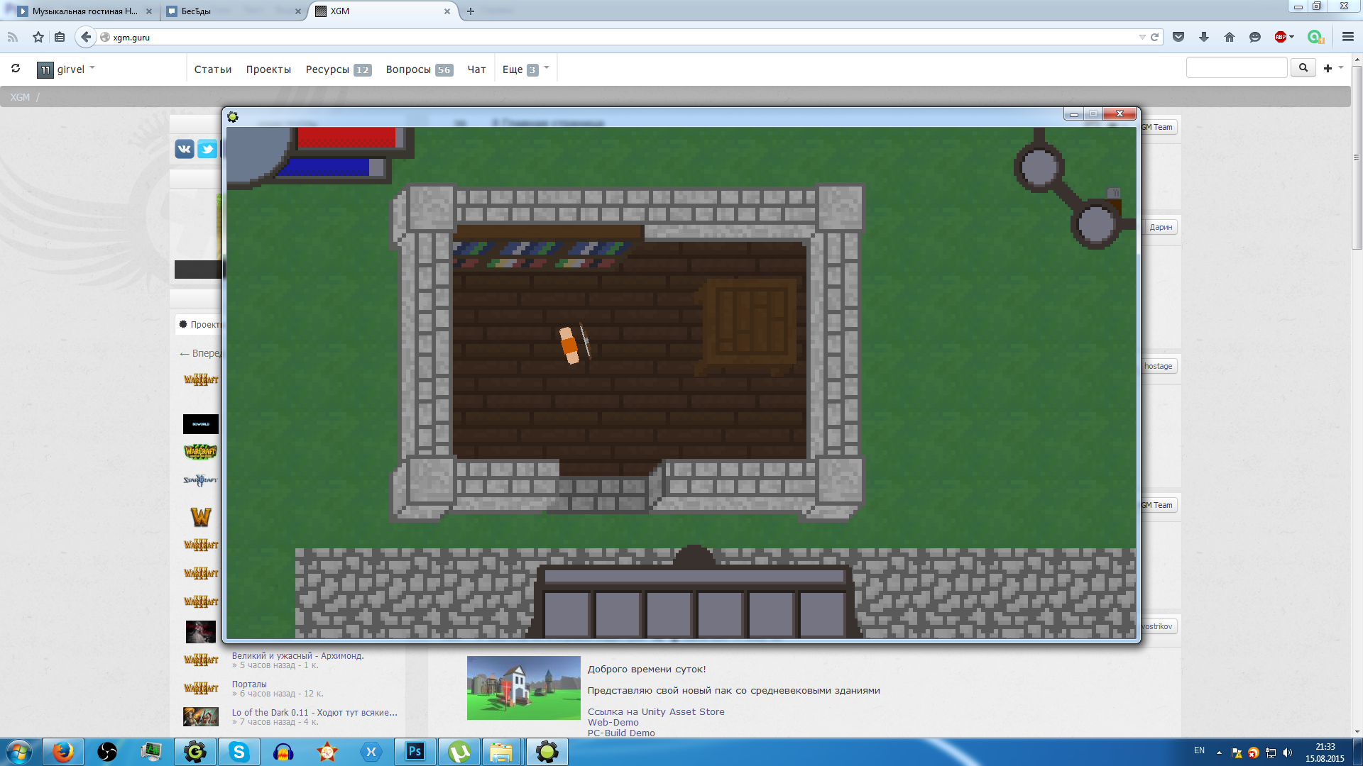 Итак, я уезжал на три недели, а за день до выезда слетели файлы проекта. Теперь я вернулся и пишу эту небольшую заметочку в подтверждение того, что проект не заброшен. Вернулся я шесть часов назад, покушал, скачал программу, разбирающую экзешник для гейм мейкер. Восстановил проект, перерисовал стены и нарисовал две декорации, все стало только лучше. Вообще, рисование декораций и стен в первый раз довольно непривычно, поэтому я буду работать над ними дальше. Ну, все. Вот скриншот.
