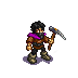 вообще что бы из такого положения сделать замах, кирка должна за голову уходить...