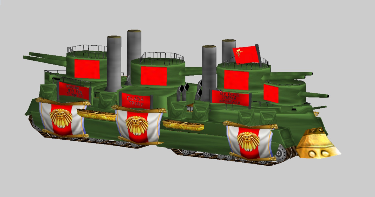 - Сухопутный Дредноут (Трофейный суперБронетяг Скальпхейма, воевал в составе Добровольческого полка, посланного Господином Адмиралом вместе с колониальными частями Королевства но был захвачен Трудовым фронтом и модернезирован под свои нужды )