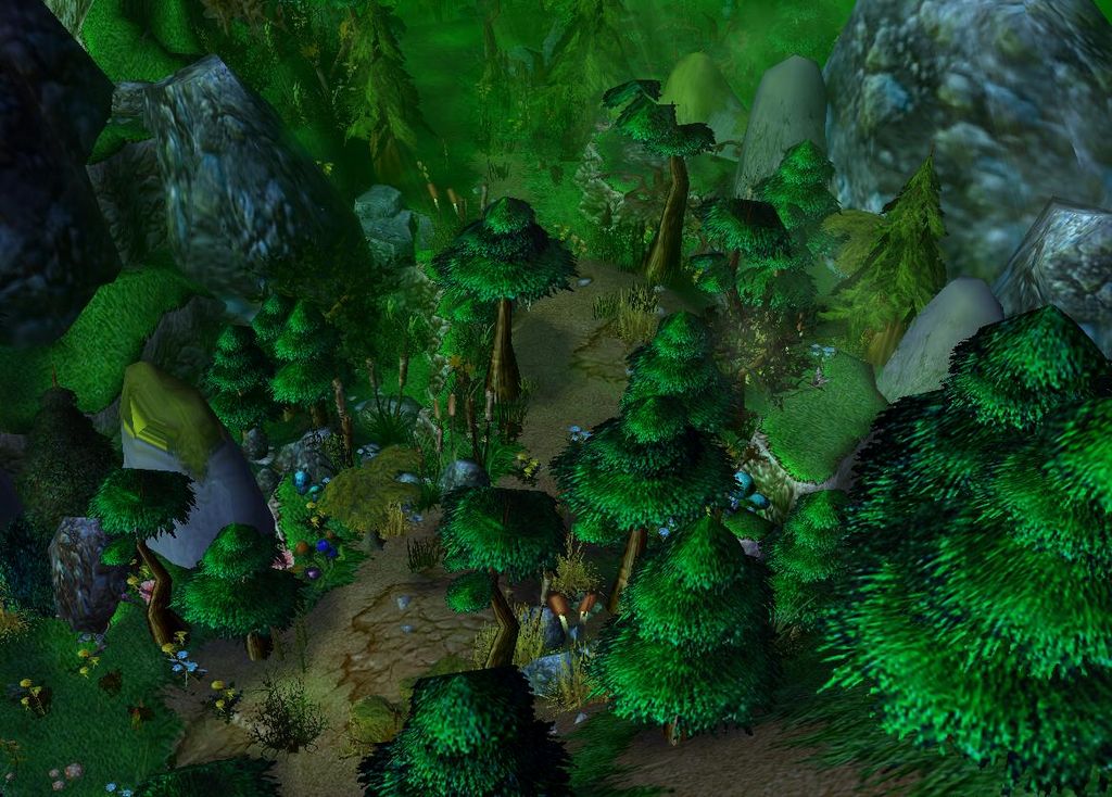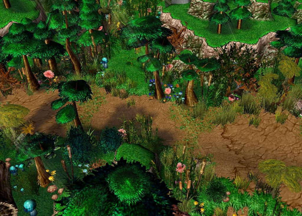 Рядом с медведем проход дальше, по пути на нас нападет огр, нет ничего сложного в его убийстве, дальше из пещеры выбежит еще один огр, отправляйте его на тот свет. Заходить в пещеру необязательно, но там нас ждут пехотинец, два огра и самое главное – два охотника. Идем направо, и убиваем несколько троллей, один убежит с посохом тролля, и нам зачислят квест: найти и убить беглеца (а можете сразу попытаться кинуть на труса сеть и не бегать за ним по всему лесу). Идите направо пока не упретесь в гору (рис. 2), после этого идите наверх и убейте йети и еще немного злых представителей местной фауны. После того, как Флек заметит Тарониса, идите налево. Прокладываем путь через волчонка и пауков. После убийства еще одного волка вы увидите проход наверх, но не спешите идти туда, если вам нужен посох тролля, а он вам нужен. Идите дальше и увидите жестокое убийство тролля чемпионом медведей, которому осталось не долго жить, а может и осталось, если вам жалко бедного мишку или не нужны невидимые стражи (в этом случае ударьте его, отбегите, подождите, когда он вернется в логово, проследуйте за ним и схватите посох). Берите посох, который восстанавливает ману, и невидимых стражей (они вам потом пригодятся).