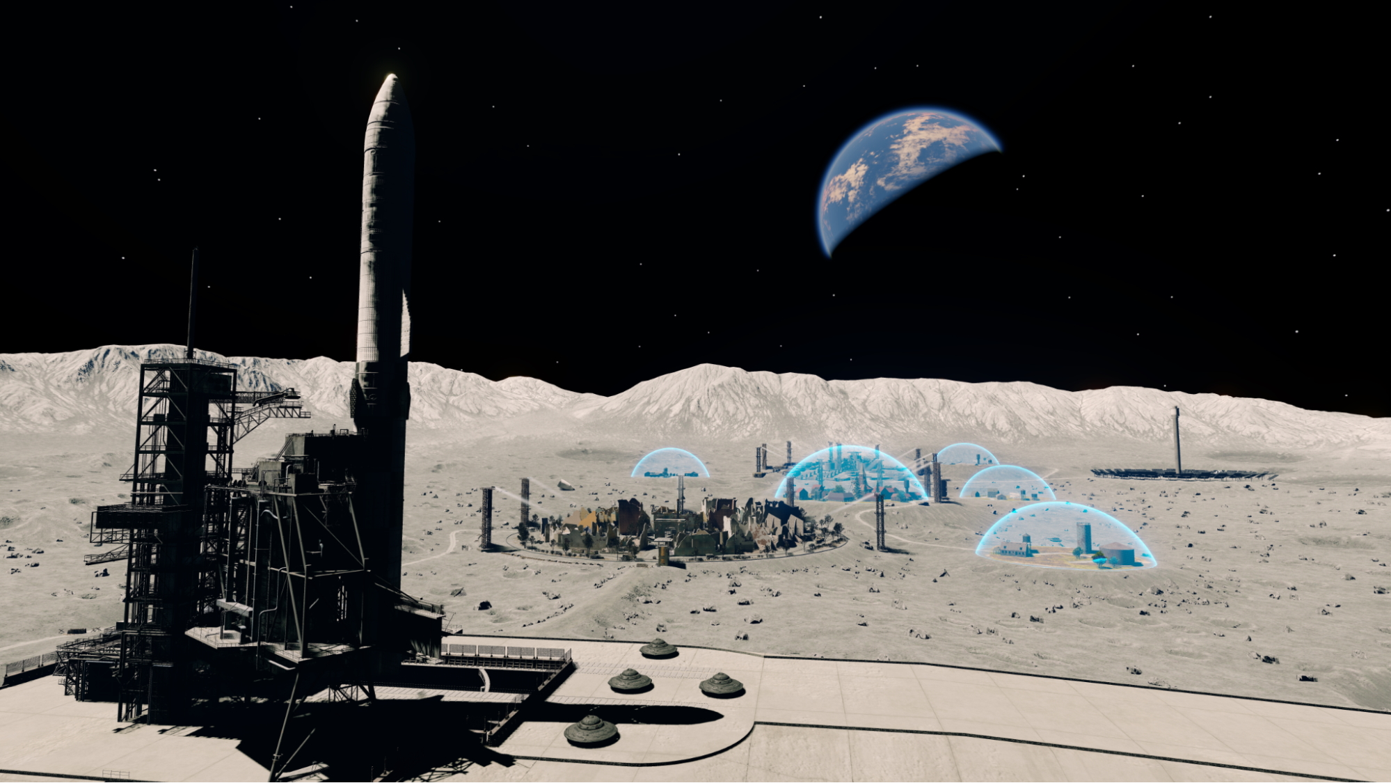 Сам же “Новый дом” предоставлял своим гостям все земные блага и даже привычную европейскую архитектуру. Наши художники смоделировали укреплённые бункеры, солнечные электростанции, ракетные площадки и жилые районы для немецкой элиты, некоторые из которых всё ещё укрыты противометеоритными щитами.