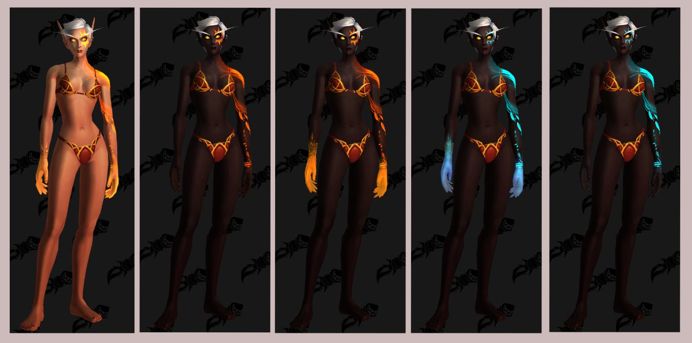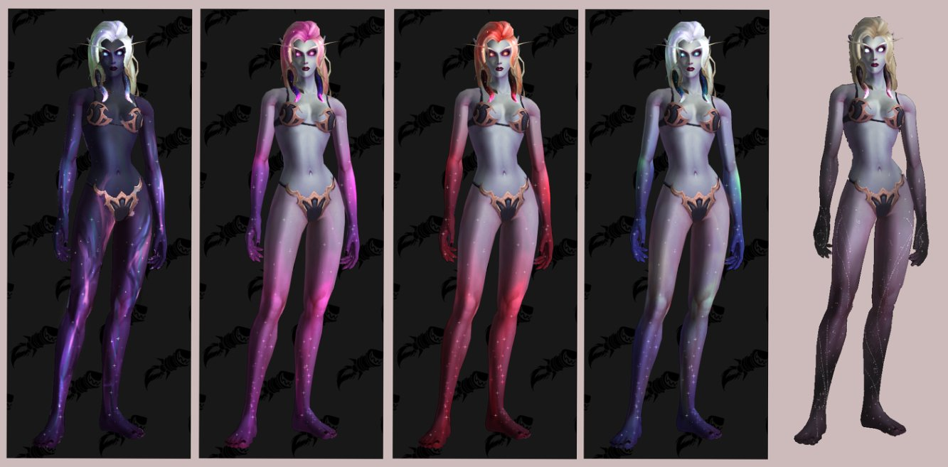 Другая художница - Aceline, вдохновившись новыми святящимися руками Ночнорожденных, представила свои варианты подобной кастомизации уже для эльфов Бездны и эльфов Крови.