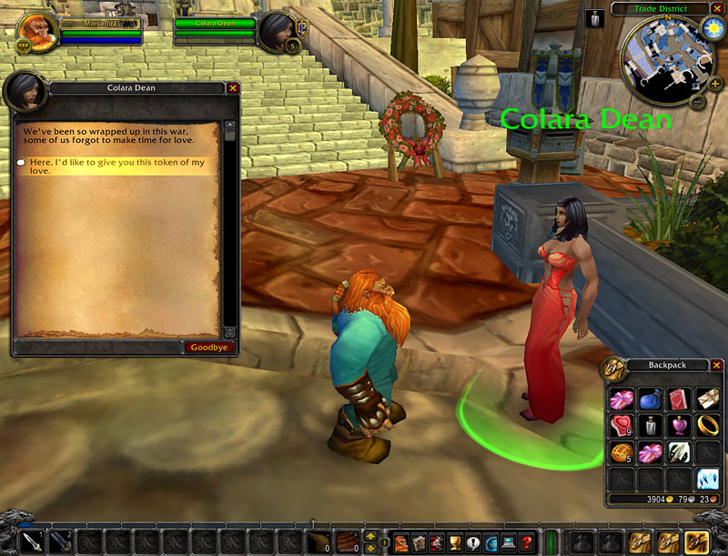 Нечто странное витает в воздухе главных городов Азерота. Некоторые зовут это любовью, а дргие - дружелюбием и восхищением. Как бы то ни было, многие стражи и горожане теперь проводят всё своё время, раздавая и принимая знаки и дары любви другим влюблённым.