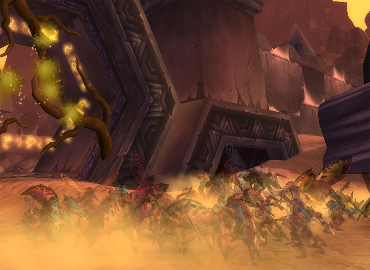 Драконы и крылатые кираджи столкнулись в безоблачном небе Силитуса, а войска ночных эльфов двигались средь песков. Но орды насекомых даже не думали иссякать.