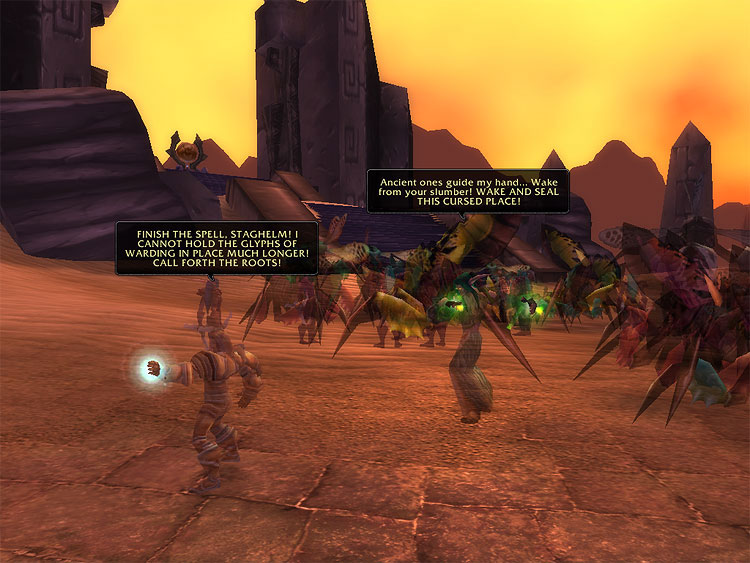 Пытаясь закрыть вход в ущелье, Фандрал и Валстанн, сопровождаемые наиболее опытными лейтенантами, хранителями и жрицами, сдерживали врага и оказывали помощь раненым. Но на место каждой уничтоженной группы силитидов приходили сотни таких же. Этот кошмар длился уже несколько дней - с тех пор, как пришло известие о вторжении силитидов и прозвучал призыв к оружию.