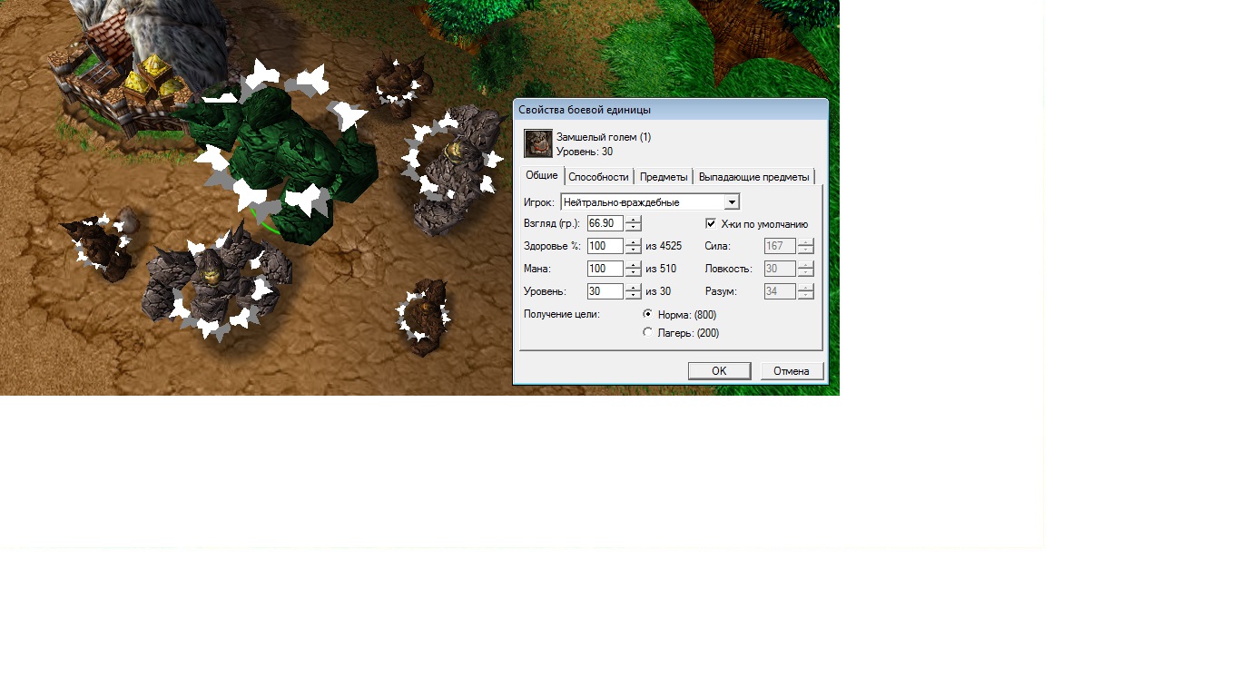 На карте есть 4 Голема убив этого нейтрального героя можно получить в свою армию 1го из нескольких случайных героев Алхимик, механик, повелитель зверей, Убийца, Панда, Сатир, гул-дан.