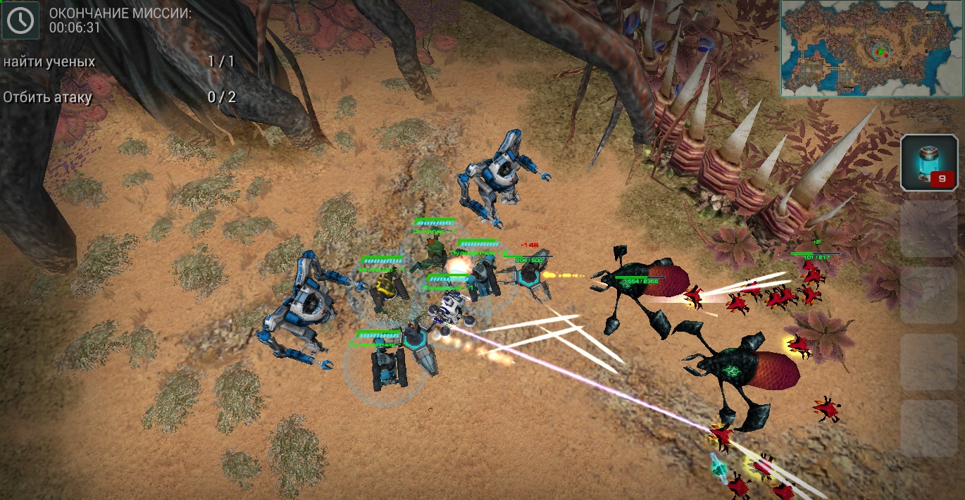 Для того, чтобы открыть новый список миссий - игроку необходимо проводить сканирование планеты. При сканировании - игроку выдаётся набор миссий, чьи уровни близки к уровню игрока. В этом наборе в обязательном порядке будет: несколько фарминговых миссий - они выполняются автоматически при отправке на них варботов и приносят игроку некоторое количество руды и энергии; и несколько боевых миссий, находящихся в случайных регионах.