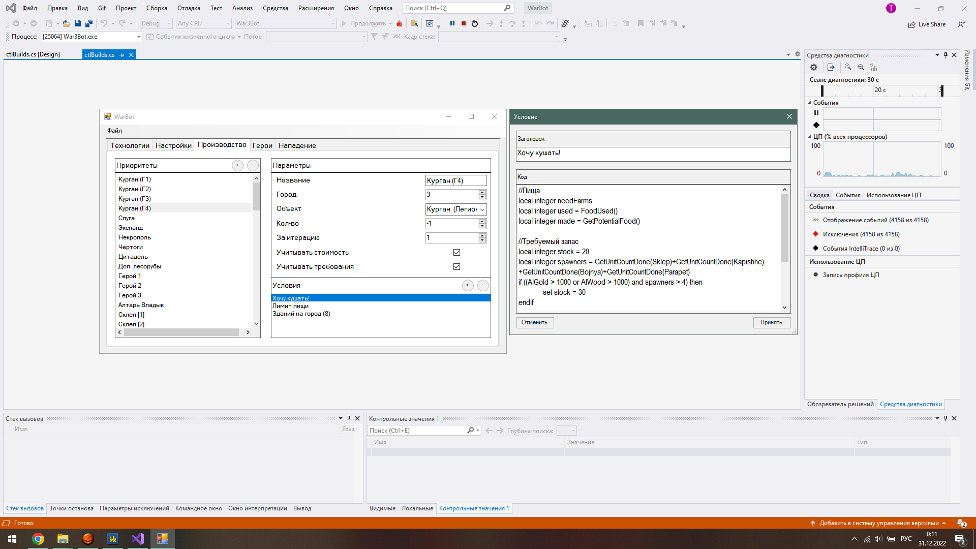 -Улучшенный ИИ, ради которого я на протяжении года писал свой редактор ботов. Скриншот приложил