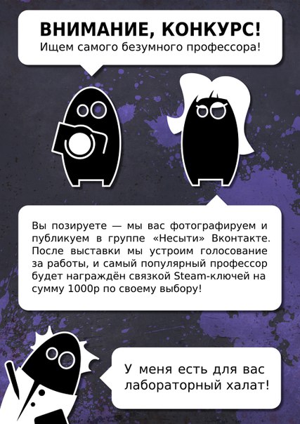 По результатам традиционного голосования лайками самый популярный профессор награждается связкой Steam-ключей на сумму 1000р по своему выбору!