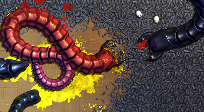 Червь может проглотить всё, что размером меньше его головы, включая фрагменты других червей. В процессе еды червь наращивает длину и увеличивается в размере, обретая новые возможности по пожиранию всего и вся, но теряя при этом мобильность. Пытаясь урвать кусок, ничего не стоит потерять свой собственный хвост.