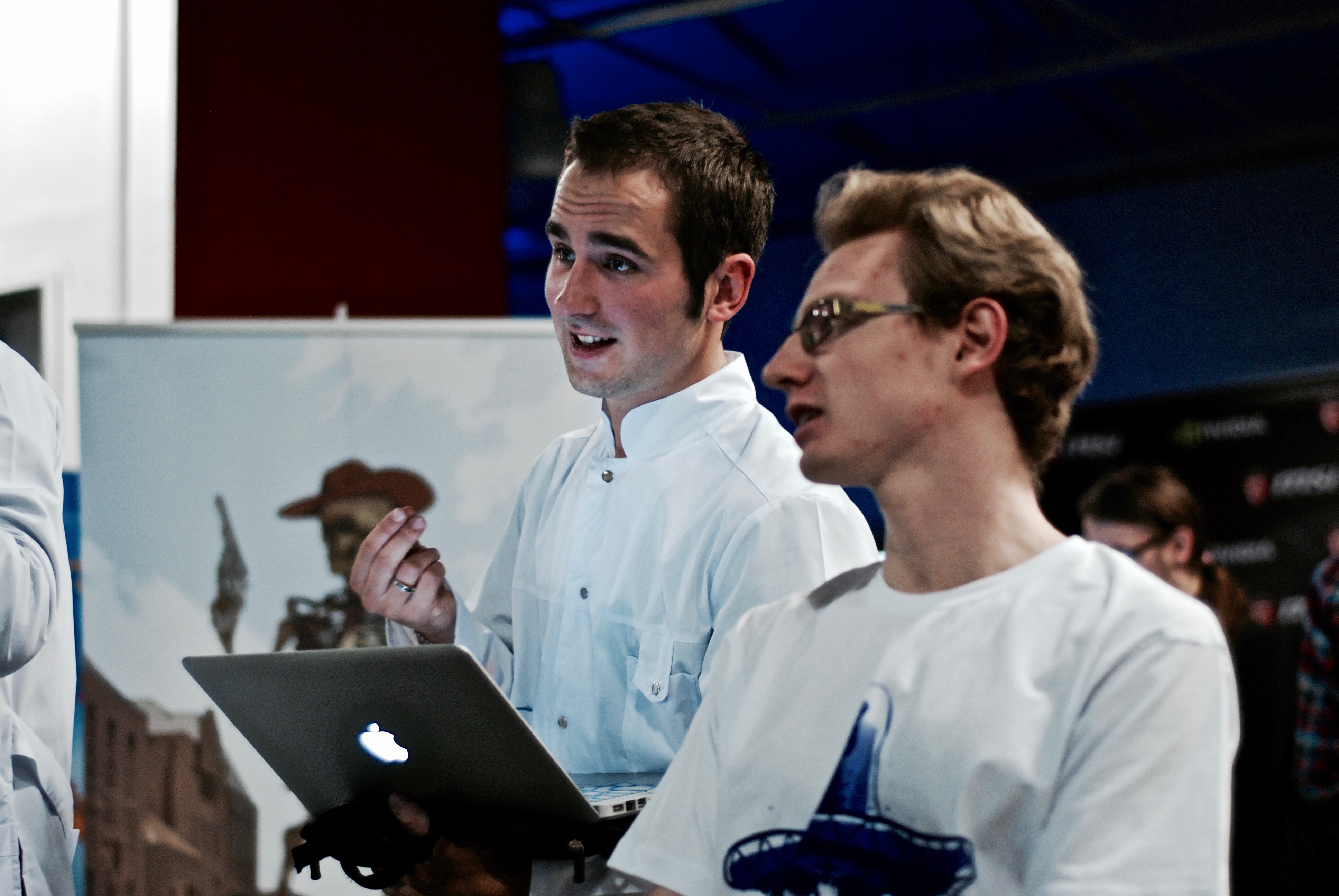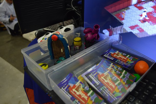 Максу ( EfimovMax) достался первый день (суббота) и самый зачётный столик. Он находился прямо на центральном входе в зону инди. Это был его первый опыт участия в подобных выставках, поэтому даже моральная помощь, которую захватил с собой — Jusper — пригодилась. Собрав стойку и разместив всё необходимое, мы стали ожидать первых посетителей.