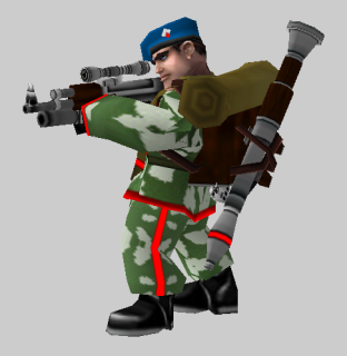 Десантник с современным автоматом, оснащенным подствольным гранатометом и снайперским прицелом. Может стрелять с ракетницы, размещенной сзади за парашютом.