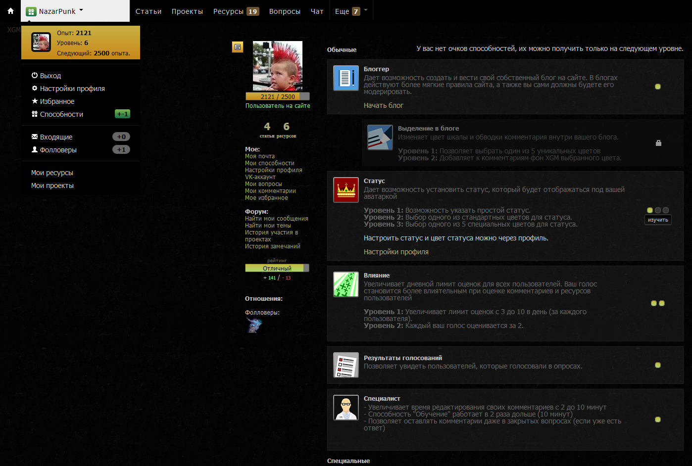 Я написал три статьи 1, 2, 3 и указал им категорию Статья. Но так как они одной тематики и я решил написать ещё, то создал ещё одну статью, а в первые три добавил содержание и перевёл их в раздел Подстатья. В итоге мне пересчитался опыт сделав меня на уровень меньше и добавилась +-1 способность.