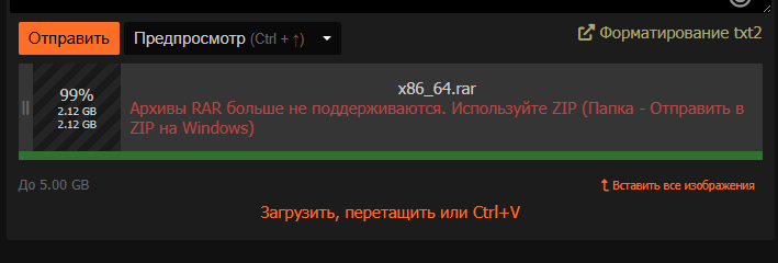 Если rar не поддерживается - зачем грузить большой архив и в конце об этом написать, если можно сразу указать на проблему и не загружать?